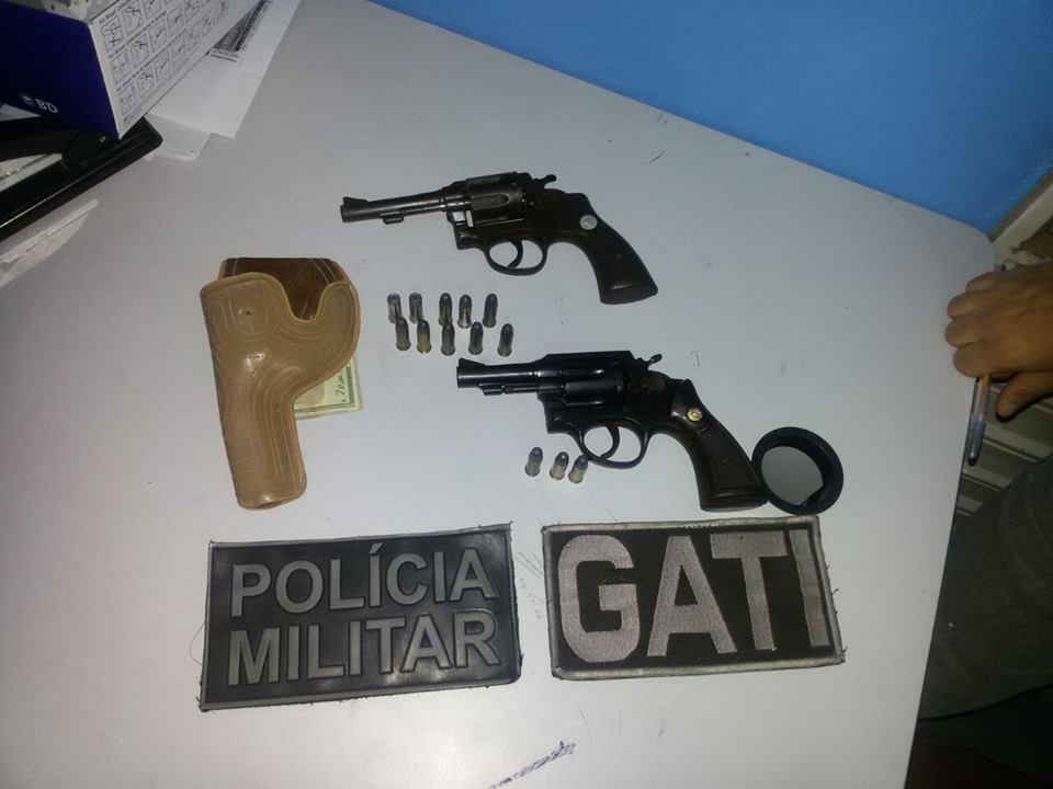 Em cada uma das residências, foi encontrada uma arma de fogo sendo dois revolveres calibre 38 e mais 13 munições intactas.